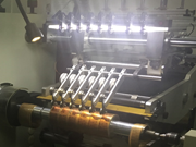 關(guān)鍵點(diǎn)在于:伺服同步、色標(biāo)追蹤、卷經(jīng)計(jì)算、張力控制、雙通道功能(將37個(gè)伺服軸任意分成兩組,獨(dú)立運(yùn)行),異步模切(定義其中任意模切軸以電子凸輪的形式跟隨其他軸運(yùn)行,凸輪曲線可調(diào)) 。