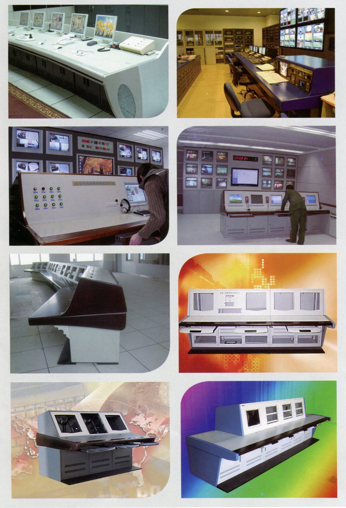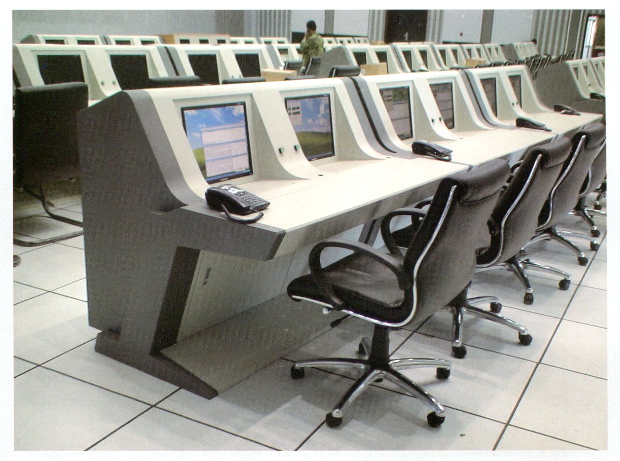 開(kāi)放式操作臺(tái)現(xiàn)場(chǎng)可根據(jù)用戶的要求制成各種角度弧度臺(tái)面并排使用。廣泛適應(yīng)于電廠、控制室等