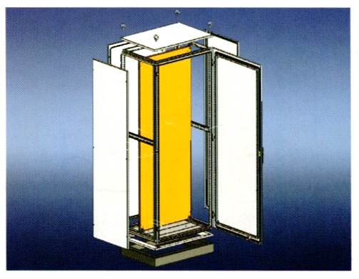 內(nèi)部框架采用優(yōu)質(zhì)冷軋鋼板一次加工成型的九折彎立柱,采用剛插件和焊接雙重連接組合成型,頂置吊環(huán)與鋼插件直接相連,保證架體的吊裝強(qiáng)度,框架動(dòng)態(tài)承重600kg。四面圍板均可拆卸,方便內(nèi)部電氣設(shè)備的安裝和多個(gè)單柜并柜連接,框架立柱每隔25mm有一個(gè)符合DIN的安裝孔,令內(nèi)部電器元件的安裝和固定儀器更加方便快捷,內(nèi)部各種高度(200-1000mm)的模件分割區(qū)的門都能夠安裝到柜體的正面,使用PS柜的適用范圍進(jìn)一步擴(kuò)展。直觀的操作面板、模數(shù)化的內(nèi)部結(jié)構(gòu)、維護(hù)便捷的分段式活動(dòng)門結(jié)構(gòu),使之成為經(jīng)典的配電系統(tǒng)控制柜。底板為多塊活動(dòng)蓋板,保證走線方便靈活,底座可選擇固定式或拼裝式底座。