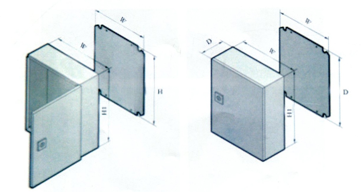 標準配置:四周密封的箱體,單門或雙門、鍍鋅安裝板、鑰匙及掛墻件,進線拉伸底板兩把凸緣鎖(AE箱)或兩端式進線底板及帶鎖桿的三點式鎖(AK).