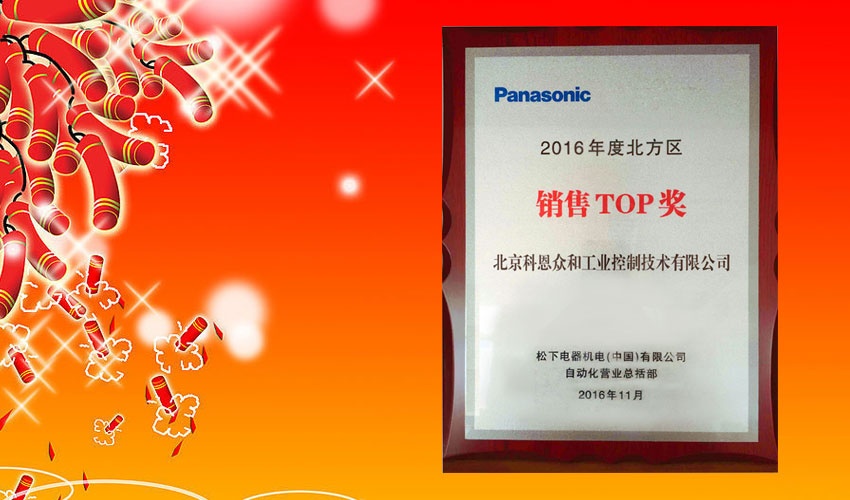 熱烈祝賀KERNTECH科恩電氣榮獲Panasonic松下2016年北方區(qū)銷售TOP獎(jiǎng)。