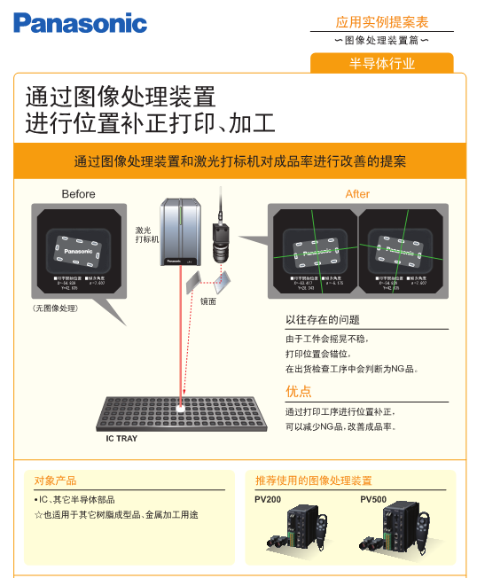 通過圖像處理裝置和激光打標(biāo)機(jī)對成品率進(jìn)行改善的提案 以往存在的問題由于工件會搖晃不穩(wěn),打印位置會錯位,在出貨檢查工序中會判斷為NG品。 |