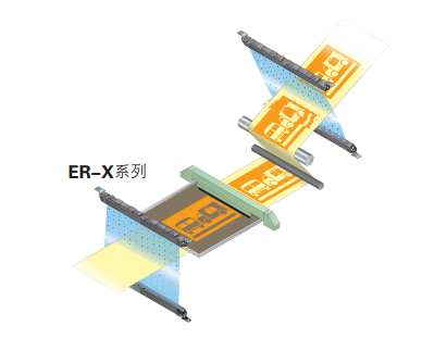 在傳送印刷薄膜,涂抹油墨等各種印刷工序 中,會發(fā)生因靜電而導(dǎo)致的印刷不均勻或污垢 附著的情況。使用帶1個控制器和2個檢測頭并 可消除靜電的ER-X系列來降低各種工序中的 靜電量后,可改善印刷質(zhì)量。
