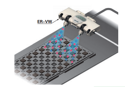 由于ER-VW的靜電消除區(qū)域與IC托盤的標(biāo)準(zhǔn) 規(guī)格相同,因此可對工件進(jìn)行均勻的靜電消除 作業(yè)。