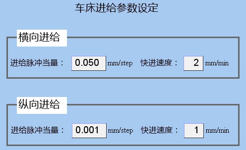 3)主要技術(shù)參數(shù):橫向進(jìn)給脈沖當(dāng)量0.05mm/step,快進(jìn)速度2mm/min;縱向進(jìn)給脈沖當(dāng)量0.001mm/step,快進(jìn)速度1mm/min。