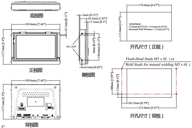 • 背鎖式人機界面能輕松安裝于嵌入式應(yīng)用環(huán)境,固定支撐架可對應(yīng)控制箱的板厚