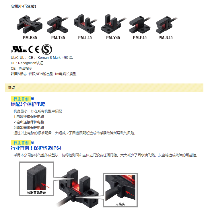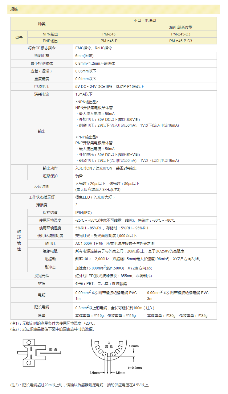 小型?微型光電傳感器[放大器內(nèi)置] PM-45系列