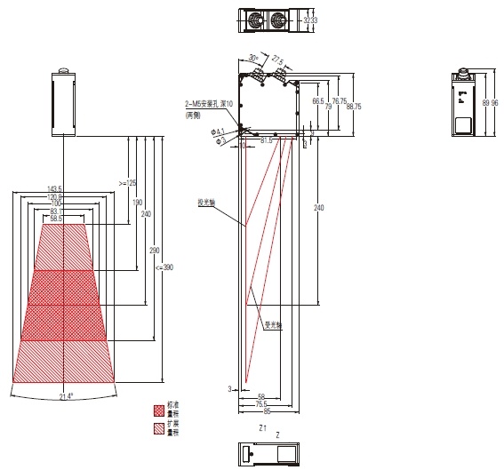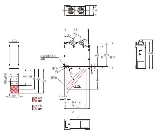測量寬度(X軸) 近點(diǎn) 23.4mm 42mm 83.1mm
